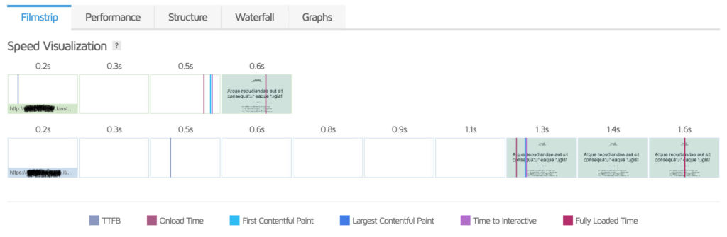 In conclusione, nei nostri test la pagina del sito ospitato su Kinsta ha regolarmente registrato prestazioni notevolmente superiori rispetto alla pagina corrispondente del sito ospitato su Register.it. In tutti i test le prestazioni del sito ospitato su Register.it sono state frenate prevalentemente dal tempo di risposta del server.