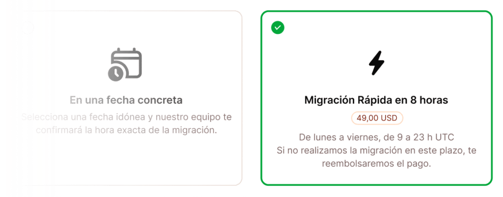 ¿Tienes prisa? ¡Regístrate ahora y tendrás tu sitio migrado en 8 horas!