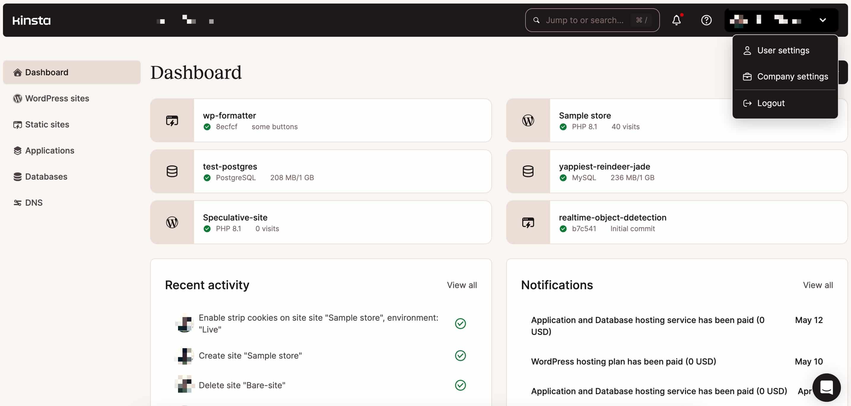 Let’s take a look at some of the features that make our MyKinsta dashboard so powerful: