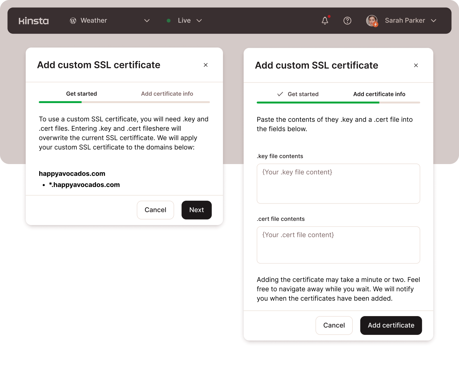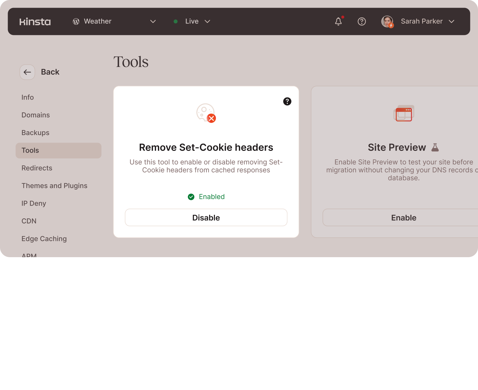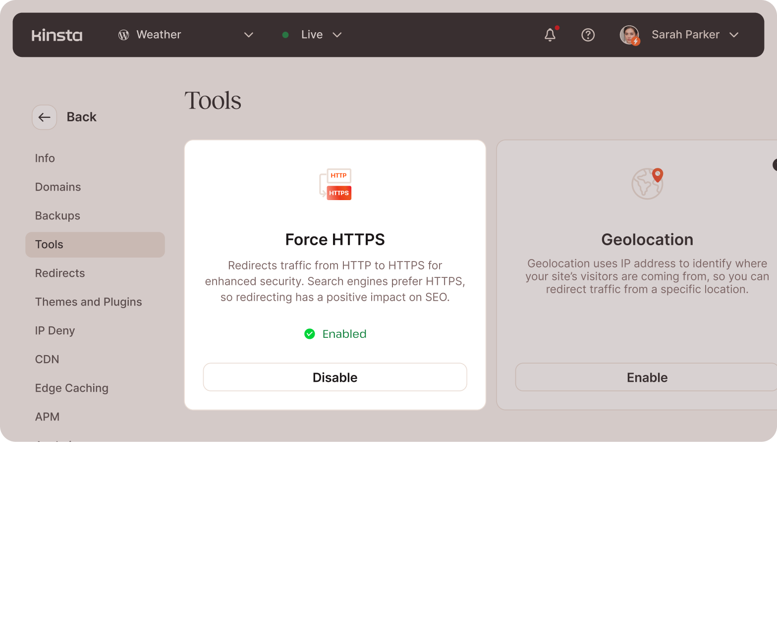 Stroomlijn het beheer van je site met alle functies en tools van MyKinsta, ons bekroonde, op maat gemaakte dashboard.