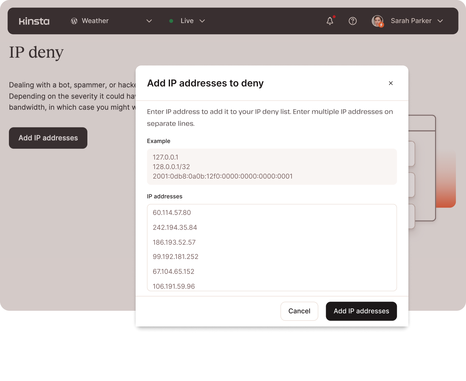 Alle sites zijn beveiligd achter Kinsta firewall, Cloudflare met Enterprise DDoS bescherming en Google Cloud firewall.