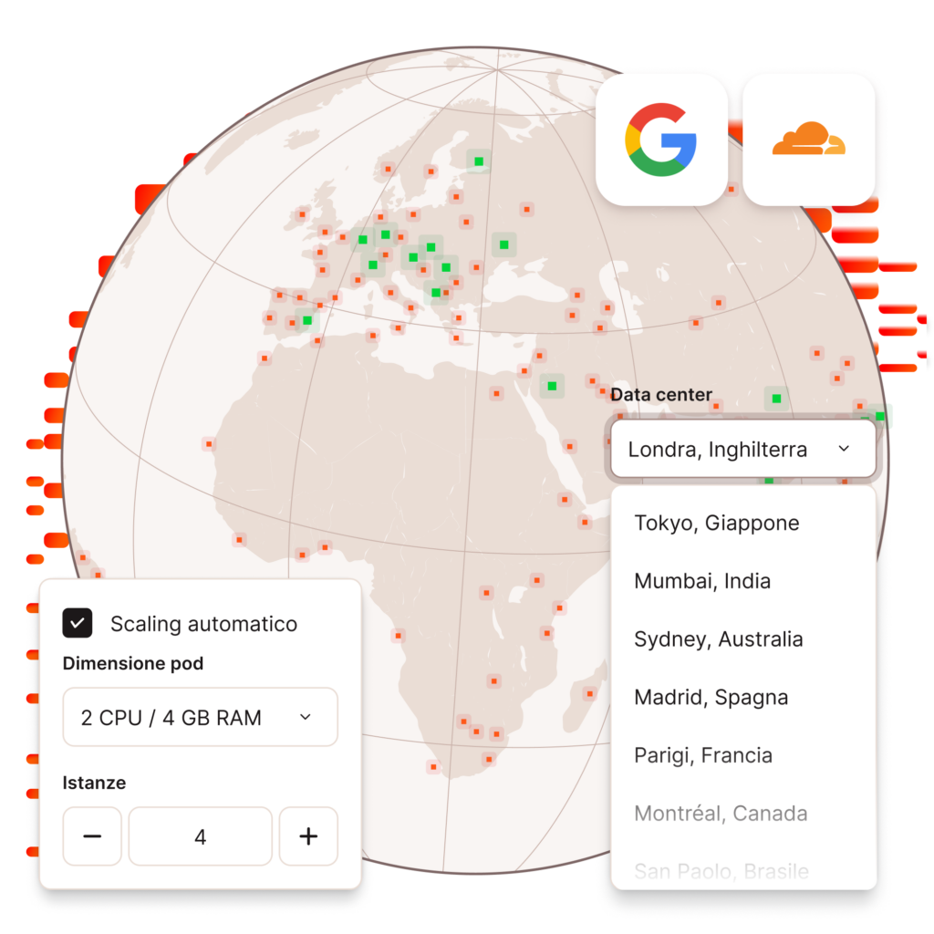Con l’Hosting di Applicazioni e con l’Hosting di Database, si pagano solo le risorse server utilizzate alla fine di ogni ciclo di fatturazione mensile. Questi servizi sono proporzionati al secondo e pagati alla scadenza del ciclo.