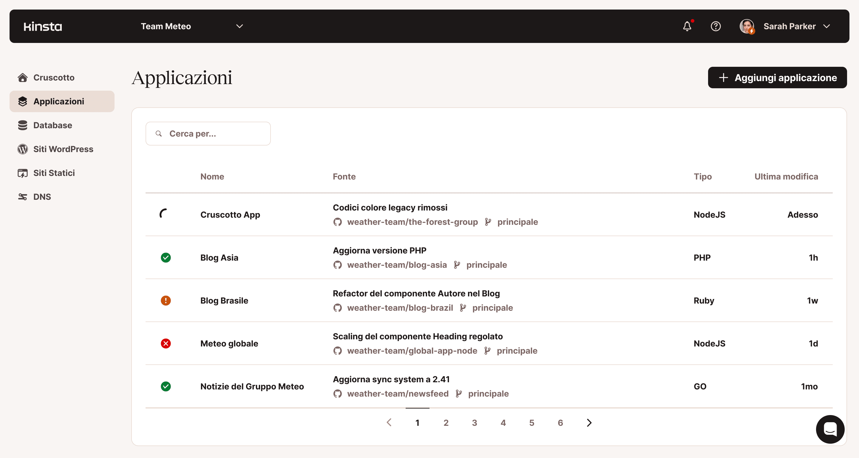 Schermata di MyKinsta che mostra i processi in fase di esecuzione